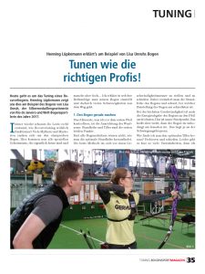 In diesem Fachartikel geht es um das Tuning eines Recurvebogens. Henning Lüpkemann zeigt uns dies am Beispiel des Bogens von Lisa Unruh, der Silbermedaillengewinnerin von Rio de Janeiro und Welt-Bogensportlerin des Jahre 2017.